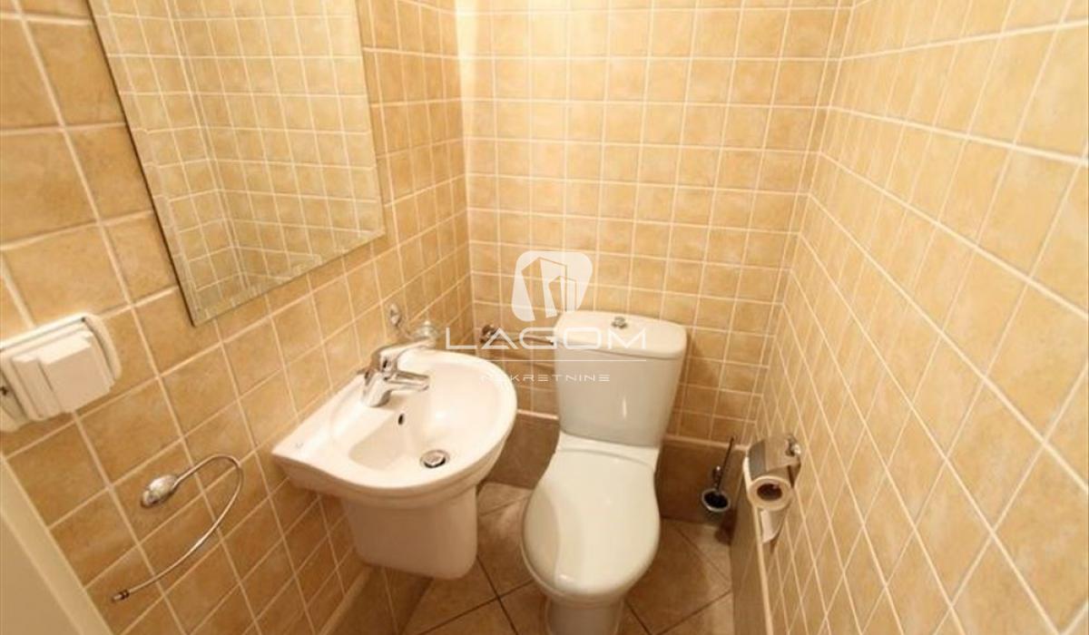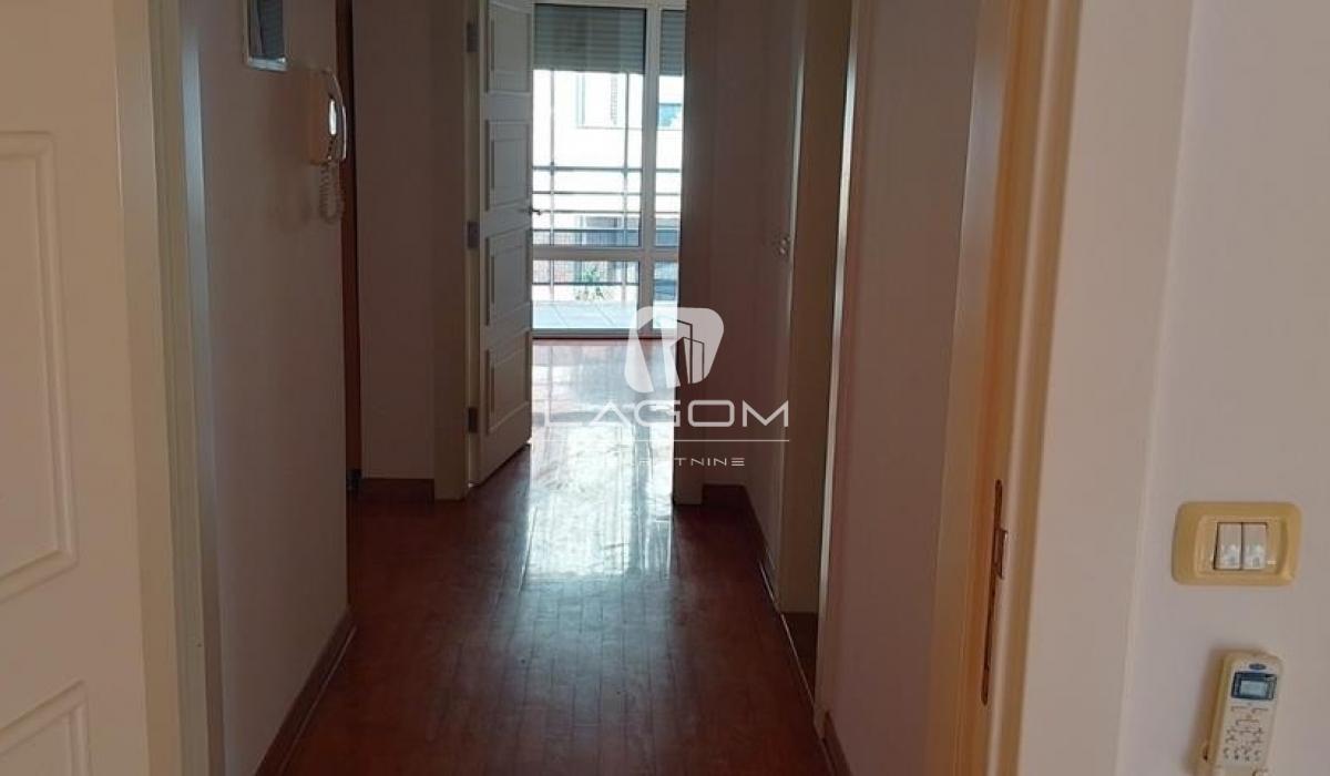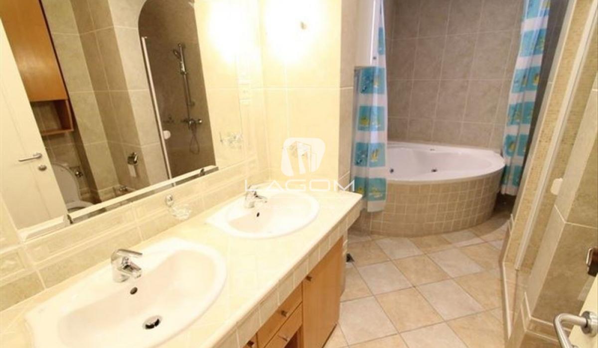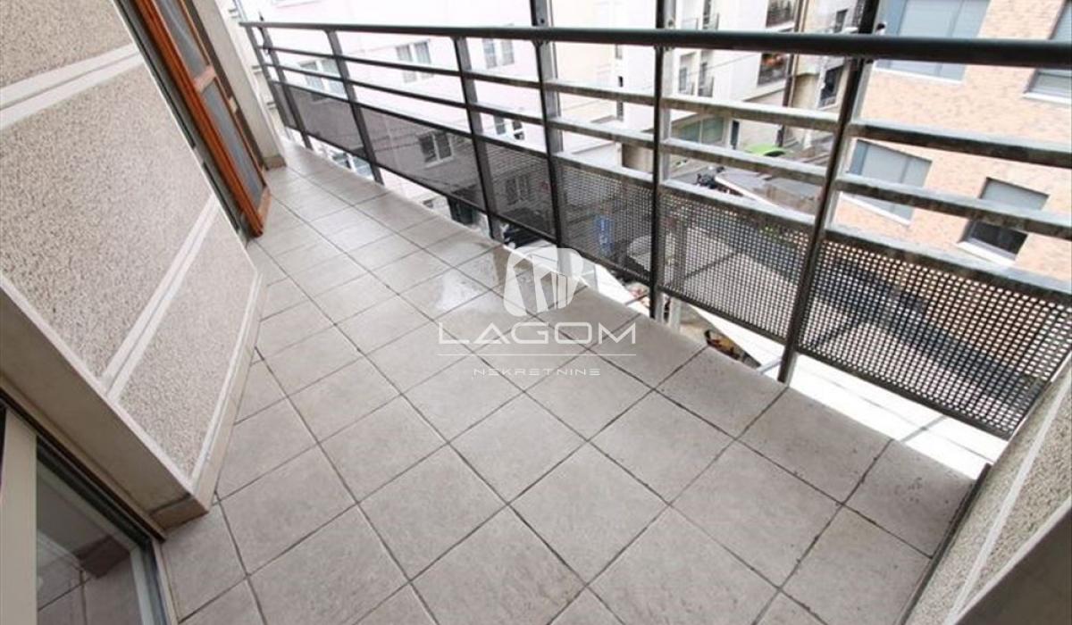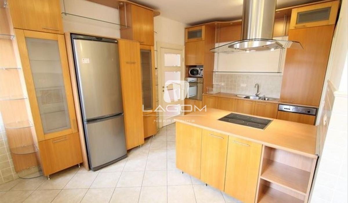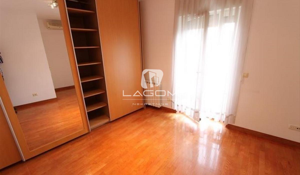 The apartment is rented unfurnished, but it features a large number of built-in wardrobes and a fully equipped kitchen with appliances.