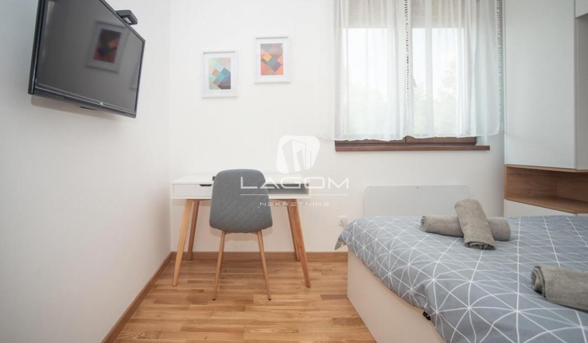 Prodaje se kompletno opremljen, sa nameštajem i svim uređajima koji su u garanciji: radna ploča za kuvanje, rerna, mašina za sudove, ugradni frizider, televizor.